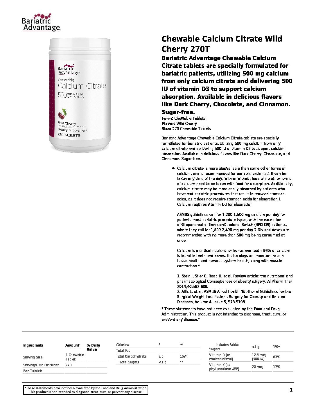 Bariatric Advantage Chewable Calcium Citrate tablets are specially formulated for bariatric patients.